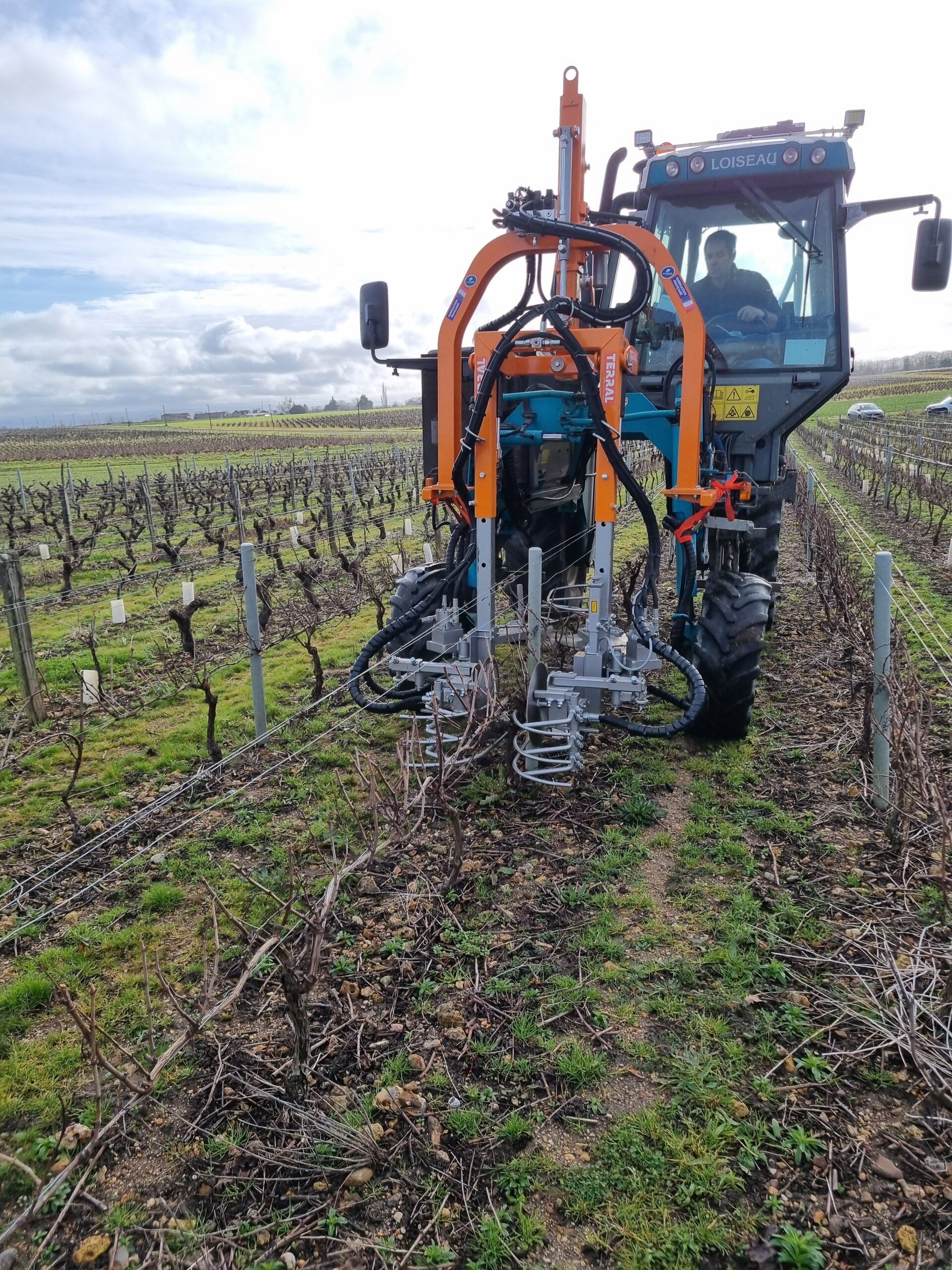 Vitesse d’avancement : de 1 à 3km/h selon la dureté des sarments et la planéité de l’inter-rang.